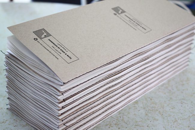 These Surf Logs are a collaborative project between a husband and wife. Ryan is a designer who surfs a lot, and Ruth is a bookbinder! Ruth also runs a nautical stationery business called Concertina Press. We developed Surf Logs as a way to easily track surf sessions right at the beach - previously, Ryan was just tracking them in an Excel spreadsheet, but wished for a more simple and convenient way. These surfing notebooks are designed to be kept in your car, in your bike basket, or in your back pocket so you can make a quick note of the conditions when you go out.